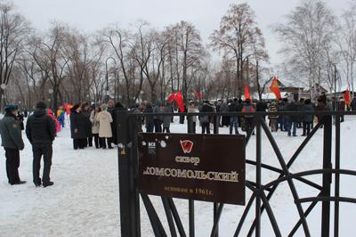 12 января коммунисты КПРФ и РКРП провели митинг в защиту сквера «Комсомольский», где депутат областной думы А. Салмин (ЕР) решил построить очередную православную церковь. Напомню, что сквер был заложен в 1961 году, в год полета в космос Ю.А. Гагарина.