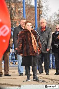 В субботу на митинге в Ефремове выступил первый секретарь горкома КПРФ, депутат областной Думы Олег Веселов, в Донском – первый секретарь горкома, депутат городского Собрания Анна Панина, в Узловой – первый секретарь горкома, депутат городского Собрания и председатель Совета ветеранов Леонид Деменко.