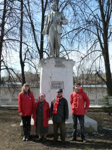 Итак: 20.04.2013 года в 12.00 комсомольская бригада и присоединившиеся к ней коммунисты с лопатами, граблями, мётлами «десантировалась» к памятнику В.И.Ленина, находящемуся у льнокомбината им. В.И.Ленина. Состояние памятника и прилегающей территории оставляло желать лучшего: ещё не до конца растаял оставшийся после зимы снег, площадка у памятника занесена была прошлогодней осенней листвой и сухими, падающими с деревьев, ветками. Просто покраски памятника будет недостаточно – необходима штукатурка, чтобы выровнять поверхность и замаскировать трещины. Погода тоже была удручающе-пасмурная, однако, все как-то сразу определились, что можно сделать, имея тот подручный материал, который был, из того, что сделать необходимо.