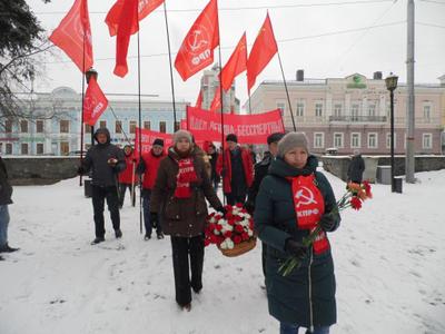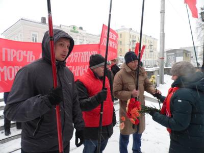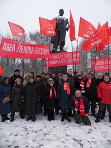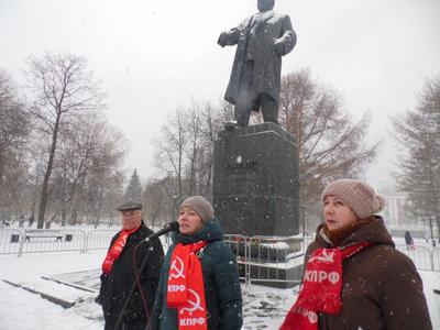 Не смотря на неожиданно вернувшуюся зиму со снегопадом и метелью, митинг, организованный Пермским крайкомом КПРФ, прошёл ярко и звучно. Торжественная колонна под звуки песни «Ленин всегда живой», с транспарантами и флагами, прошла по театральной аллее к площадке перед памятником, где участниками были возложены цветы к монументу Ильичу. Лозунги на красных полотнищах гласили: