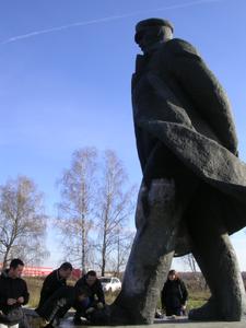 Коммунисты отчистили памятник В.И.Ленину в Горках, испачканный вандалами