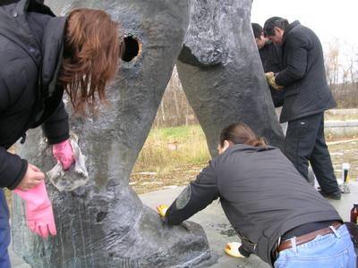 Задача, казавшаяся на первый взгляд не очень трудной, на деле оказалась очень даже проблемной: обычный растворитель с краской вандалов не справился и пришлось применить специальные щетки и более сильные растворители. И сам процесс оказался очень трудоемким - приходилось очищать памятник тщательно, шаг за шагом, буквально по квадратным сантиметрам.