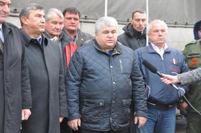 «Я хотел бы передать вам привет от главы ДНР Александра Захарченко, - отметил руководитель Штаба ЦК КПРФ по оказанию помощи жителям Юго-Востока Украины, депутат Госдумы Казбек Тайсаев. - Неделю назад мы встречались с ним в Донецке, чтобы скорректировать наши действия. Сегодня там необходима помощь по подготовке социальных объектов к зиме. С Северного Кавказа сегодня также пойдут машины с огромным количеством стройматериалов для проведения восстановительных работ, которые присоединятся к колонне из Подмосковья. Наверное, это самая приятная новость, что сегодня уже можно восстанавливать объекты, разрушенные войной. Всем огромное спасибо!».