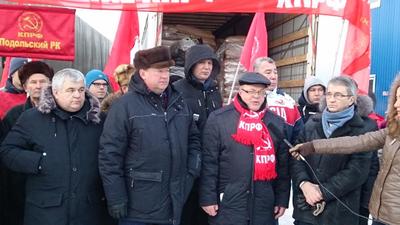 Еще только светало, а коммунисты Подмосковья и Москвы традиционно собрались в совхозе им. Ленина, чтобы в 49-й раз отправить гуманитарный груз в помощь жителям Донбасса. Крепкие морозы не стали помехой, погрузка трех большегрузных машин шла полным ходом. Все понимали, как важен этот груз для братского народа юго-востока Украины.