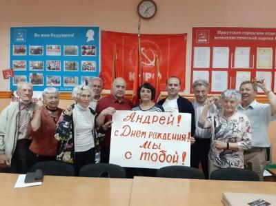 Руководитель фракции КПРФ в Законодательном собрании Иркутской области Андрей Левченко 14 августа отмечает свой день рождения. Коммунисты Иркутской области сегодня горячо поздравляют своего товарища, который уже почти год несправедливо находится в заключении, отправляют ему телеграммы и письма.