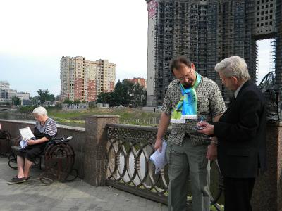 Затем колонна автомашин проследовала в г. Щёлково, с которого, можно сказать, всё и началось. На пикете было продемонстрировано при помощи специального прибора качество воды из реки Клязьма и водопроводной воды, результат удовлетворительный, но можно сказать одно: воду из под крана пить не рекомендуется, это ещё мягко говоря!