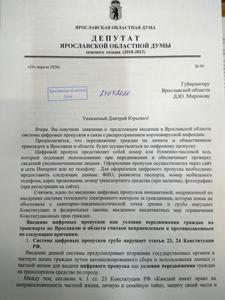 Депутаты-коммунисты в Ярославской областной Думе 24 апреля направили губернатору Дмитрию Миронову обращение с просьбой не вводить в области электронный контроль над гражданами.