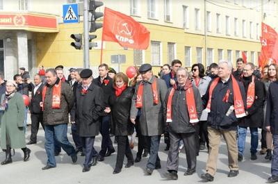 Коммунисты провели «красное» шествие в честь Первомая и приняли участие в общегородском митинге