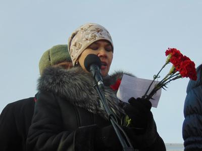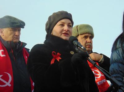 Также в ходе акции выступили партактивистка Ленинского района Лариса Идолова и член ВЖС «Надежда России» Людмила Попова. Коммунистки отметили величие праздничной даты и ее значение как для истории России , так и мировой. Новейшая история России возвращает в нашу жизнь один за другим символы Великой революции, - констатировала Лариса Идолова. Среди возвращенных символов Лариса Гавриловна отметила: Ленина, Сталина и крейсер «Аврору» - как символ наступления кульминации народной борьбы за свободу.