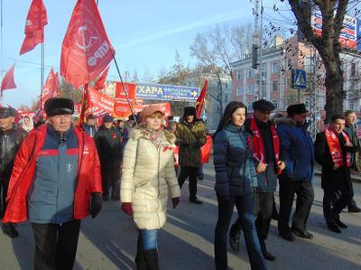 7 ноября, в годовщину Великой Октябрьской Социалистической революции, барнаульские коммунисты провели демонстрацию и митинг. Организатором мероприятия выступил Алтайский крайком КПРФ.