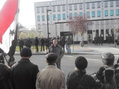 Сегодня, в день освобождения Украины от немецко – фашистских захватчиков, комсомольцы и коммунисты совместно с организацией Украино – Сирийской дружбы, Киевской городской ветеранской организации и союза советских офицеров провели пикет посольства США в Киеве.