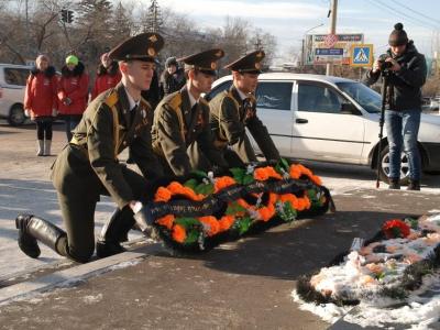 Комсомольцы и коммунисты Читы возложили венок к памятнику танковой колонне «Комсомолец Забайкалья»