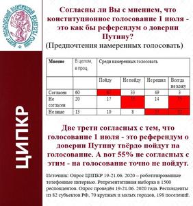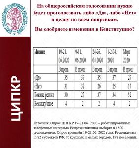 Коронавирус, выживание и общероссийское голосование по поправкам в конституцию. Опрос ЦИПКР 19-21 июня 2020 года