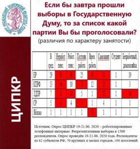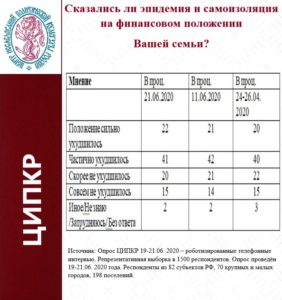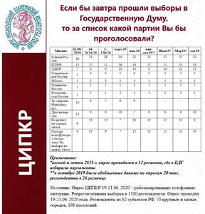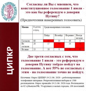 Метод опроса: Опрос ЦИПКР–19-21/062020 – роботизированные телефонные интервью. Выборка репрезентативная, случайная, квотированная по половозрастной структуре и урбаностратам. Погрешность не превышает 3,5%.