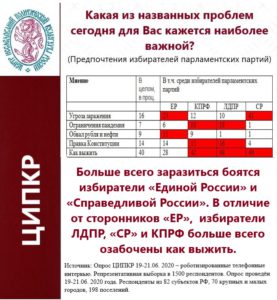 Как видно, больше всего заразится бояться избиратели «Единой России» и «Справедливой России». В отличие от сторонников партии власти избиратели ЛДПР, КПРФ и «Справедливой России» больше всего озабочены проблемой выживания. Обвал рубля более тревожит избирателей «Единой России». А ограничения из-за эпидемии сильнее всего затронули электорат ЛДПР и КПРФ.
