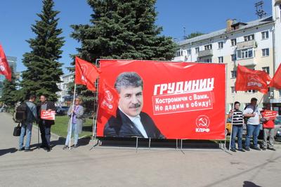 Костромские коммунисты 24 мая провели пикет в поддержку руководителя подмосковного Совхоза имени Ленина Павла Грудинина.