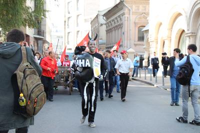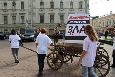 «Красная Москва-КПРФ» переехала Обаму телегой. Театрализованный митинг столичных коммунистов