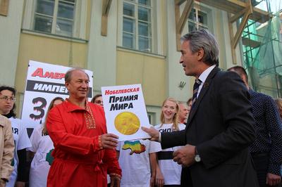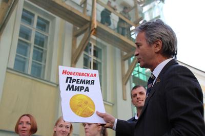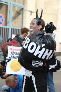9 сентября у Представительства ООН в России состоялся театрализованный митинг КПРФ с требованием лишить президента США Барака Обаму Нобелевской Премии Мира.