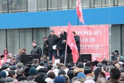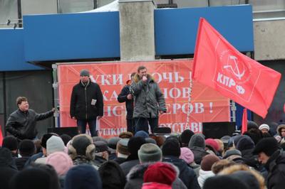 Сегодня митинг трудящихся - тех кто восстанавливал страну после Великой Отечественной войны, тех кто строил ракетно-космическую отрасль, легкую и тяжелую промышленность. Уже два десятка лет на труде народа жируют олигархи! На труде народа царствуют некоторые господа!
