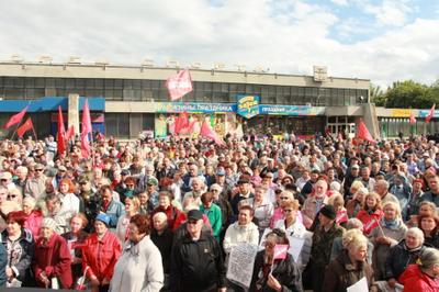 На митинге у Дворца спорта авиационного завода на Безымянке, граждане потребовали от региональных властей отменить пакет антисоциальных решений, принятых по инициативе Губернатора с начала этого года (отмена льгот по ЖКХ, транспортным поездкам, замена ЕДВ на «компенсации»).