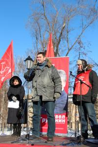 "Именно когда партия большевиков во главе с Владимиром Лениным одержала победу над царизмом в октябре 1917 года, она показала всему миру, что значит социализм, сплоченность трудового народа. Вот сейчас происходит тоже самое. Сейчас, на входе в сквер, у нас полиция изъяла газеты, которые мы раздавали. Наших товарищей повезли в Промышленный РОВД. Позор этой власти, которая боится собственного народа! Я сказал господину полковнику: "Вы идете против трудового народа! Вы, кто поддерживает Меркушкиных, Азаровых, служит им верой и правдой, как служили царские офицеры и генералы царю. Вы идете против народа. Народ всё видит, чувствует и делает выводы!". Именно трудовой народ должен сплотиться вновь, как 100 лет назад в 1917 году, чтобы показать свою силу этой буржуазной демократии. Власть говорит, у нас свобода. Свобода для кого? Для богатых. Это демократия обмана и лжи, товарищи! Мы с вами на себе ощущаем все прелести этой свободной демократии. Хватит это терпеть! Сегодня мы с вами должны приложить максимум усилий, чтобы 18 марта претворить идеи социальной справедливости в жизнь. Мы можем повернуть Россию лицом к социализму!"