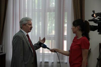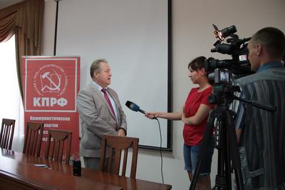 Перед началом пресс-конференции С.П.Обухов и Н.И.Осадчий дали короткие интервью краевой телерадиокампании «9-й канал». Были раскрыты главные направления и результаты деятельности фракций КПРФ в российском и краевом парламентах.