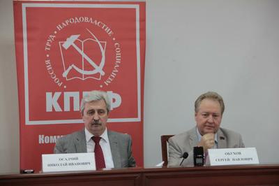 В пресс-конференции приняли участие: депутат Государственной Думы, член Президиума, секретарь ЦК КПРФ С.П.Обухов, руководитель фракции КПРФ краевого парламента, член ЦК КПРФ, первый секретарь крайкома партии Н.И.Осадчий, депутаты Законодательного Собрания края – член ЦК КПРФ, секретарь краевого Комитета партии П.В.Соколенко и член Президиума ЦКРК КПРФ, первый секретарь Краснодарского горкома КПРФ С.К.Лузинов.