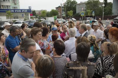 Как только депутат С.П.Обухов и его помощники по «Народной приемной» вышли на проспект, моментально собралась внушительная масса жителей. Каждый хотел рассказать о наболевшем - о тех проблемах, которые волнуют, мешают жить. Но при этом не решаются властью годами. И больших трудов депутату и помощникам стоило успокоить людей и начать встречу.