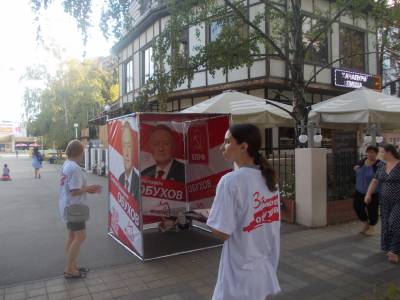 В Краснодаре продолжается агитационная кампания в поддержку действующего депутата Государственной Думы VI созыва, секретаря ЦК КПРФ и кандидата по 46-му Краснодарскому одномандатному округу Сергея Обухова. Актив Краснодарского городского отделения КПРФ и ЛКСМ РФ агитирует на центральных улицах города за нашего кандидата. Раздается агитационная продукция, в том числе последний выпуск бюллетеня «Краснодарская правда». Коммунисты и комсомольцы стараются донести до краснодарцев программу партии и Сергея Павловича.