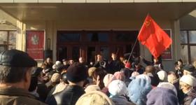 Осада администрации Кубани возмущенными ветеранами. Протест против повышения тарифов на городской транспорт и отмены льгот для пенсионеров.