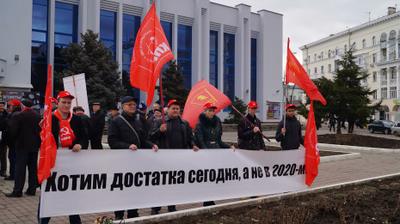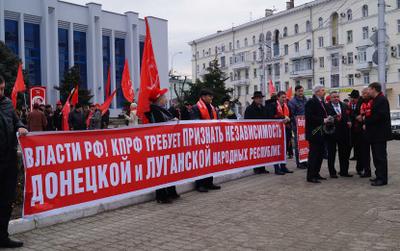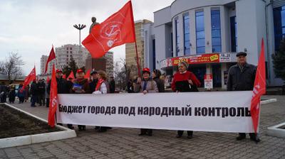 Краснодарские коммунисты и сторонники партии выступили в защиту социально-экономических прав граждан, в поддержку актуальности ленинского учения и в поддержку жителей Донецкой и Луганской народных республик.