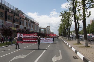 Под музыку духового оркестра колонна двинулась в путь. Шествие возглавляли знаменосцы: в их руках были копии Знамени Победы, флаги родов войск и КПРФ. Далее следовал баннер с портретами Верховного Главнокомандующего И.В.Сталина и прославленных полководцев Победы, советских маршалов.