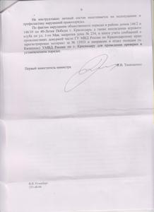 С целью приведения указанных участков улично-дорожной сети в надлежащее эксплуатационное состояние главе муниципального образования г. Краснодар 18.08.2015г. направлено представление об устранении причин и условий, способствующих реализации угроз безопасности граждан и общественной безопасности.