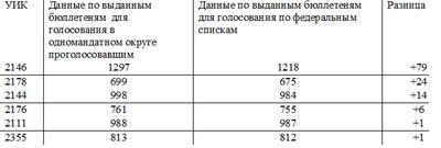 Расхождения в итоговых данных при голосовании по кандидатам по 46-му одномандатному округу и за федеральные списки кандидатов в ряде УИК
