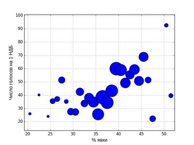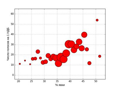 Это видно на исследовании зависимости количества голосов, приходящихся на один недействительный бюллетень. Многолетние электоральные статистические наблюдения установили, что эти показатели стабильны вне зависимости от явки.