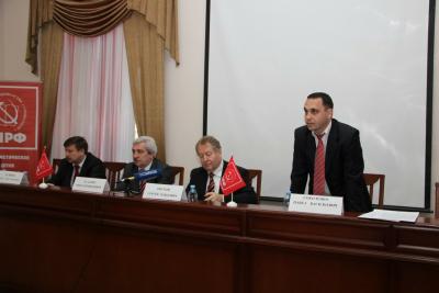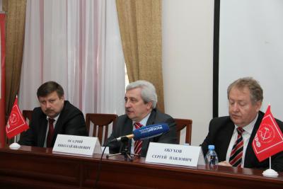 В краевом общественно-политическом центре состоялась пресс-конференция коммунистов-депутатов Государственной Думы и Законодательного Собрания Краснодарского края. Член Президиума, секретарь ЦК КПРФ, депутат Госдумы С.П.Обухов, член ЦК партии, первый секретарь крайкома, руководитель фракции КПРФ Законодательного Собрания края Н.И.Осадчий, член ЦК, секретарь крайкома, депутат Законодательного Собрания края П.В.Соколенко, член ЦКРК КПРФ, депутат кубанского парламента С.К.Лузинов рассказали об итогах работы XVСъезда КПРФ и о законодательных инициативах Компартии.