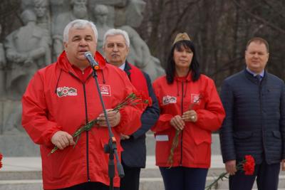 Участники автопробега, а также краснодарские коммунисты и комсомольцы, представители беспартийной общественности собрались у мемориала, посвященного жертвам фашизма в городской Чистяковской (Первомайской) роще.
