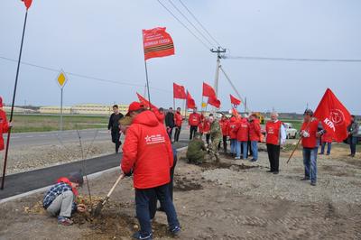 Белореченские активисты КПРФ и беспартийные патриоты во главе с первым секретарем райкома партии, депутатом районного Совета Н.В. Боровковым подготовили на въезде в город, в новом микрорайоне, место для высадки саженцев черешни. Участники автопробега с радостью откликнулись на это предложение и быстро осуществили задуманное. В мероприятии приняли участие и молодые энтузиасты городского клуба исторической реконструкции, встретившие гостей в форме военных лет.