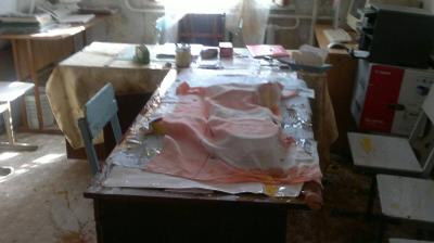 Помещению и оборудуванию нанесен ущерб. Стены, оборудование, документация - обезображены и испачканы.
