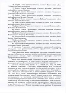 10. Депутат Совета Дмитриевского сельского поселения Кавказского района Золотоверх Андрей Владимирович.33. Депутат Совета Голубицкого сельского поселения Темрюкског42. Депутат Совета Васюринского сельского поселения Динского района Подчашинский Владимир Николаевич.