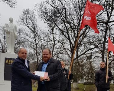На днях, после завершения всех необходимых работ, памятник был торжественно открыт. В ходе церемонии первый секретарь городского Комитета партии Виталий Пронькин вручил активистам почетные грамоты, а новым членам КПРФ – партийные билеты.