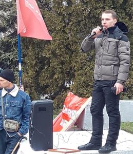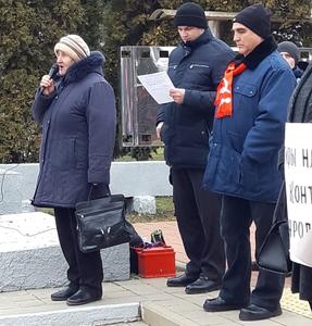 Далее митинг перешел в режим «свободного микрофона». Выступили: Е. Шевченко – представитель обманутых пайщиков ЖСК «Наш дом», оставшихся без денег и без квартир; Л. Мищенко – с болью тяжелой жизни простого человека в капиталистической стране; молодой коммунист Н. Васюков – о «капиталистическом рае» для рабочих на производстве.
