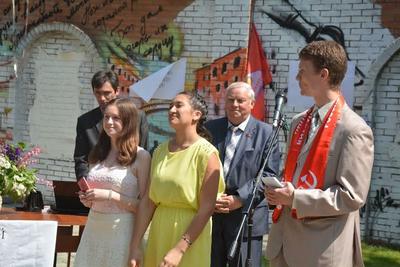 Пришёл поздравить земляков первый секретарь горкома комсомола Даниил Гребёнкин. Он вручил комсомольские билеты недавно принятым в комсомол девушкам.