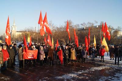 На Красной площади Красноярска прошёл объявленный накануне митинг протеста против социально-экономической политики правящего режима и за отставку губернатора В.А. Толоконского.