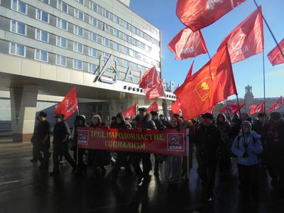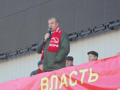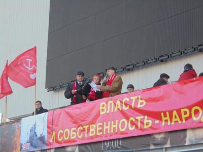 В завершение Секретарь ОК КПРФ по идеологии Владимир Аксенов зачитал резолюцию митинга: "Сегодня Россия, как и в 1917 году вновь становится слабым звеном в системе капитализма, власть ведет страну по пути новых потрясений и гибели.
