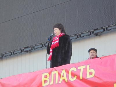 Митинг открыла первый секретарь Иркутского городского комитета КПРФ Ольга Носенко. Она напомнила собравшимся об истории этого праздника, о достижениях Советского народа: "У нас были бесплатное образование и медицина, мы жили в Великом государстве. Почему сегодня власть - в том числе Путин и правительство - лишили нас этого?!