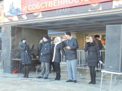 В промежутках между выступлениями для собравшихся пела творческая группа обкома КПРФ "Сполох".