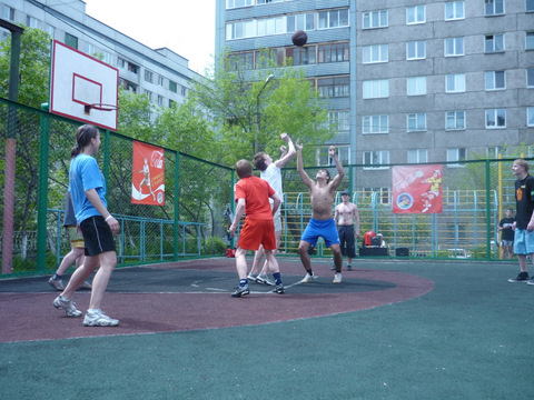 Пара слов о стрит-боле. Он лишь немного отличается от баскетбола – игра ведется в одно кольцо, а на поле находятся шесть человек (по три игрока от каждой команды).