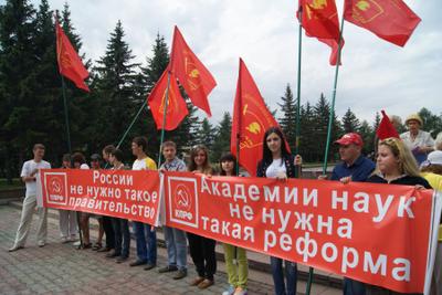 Участники митинга приняли резолюцию с требованием отставки кабинета министров Д. А. Медведева и приведения к власти правительства народного доверия. Комсомольцы пришли с транспарантами, призывающими прекратить безумные реформы Российской академии наук.
