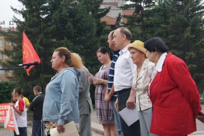 Это утверждение подкрепили аргументами участники митинга – председатель совета «Надежда России» в Советском районе Валентина Автаева, председатель совета секретарей первичных отделений КПРФ Свердловского района Наталья Маслова, поэтесса Нинель Лесковец.